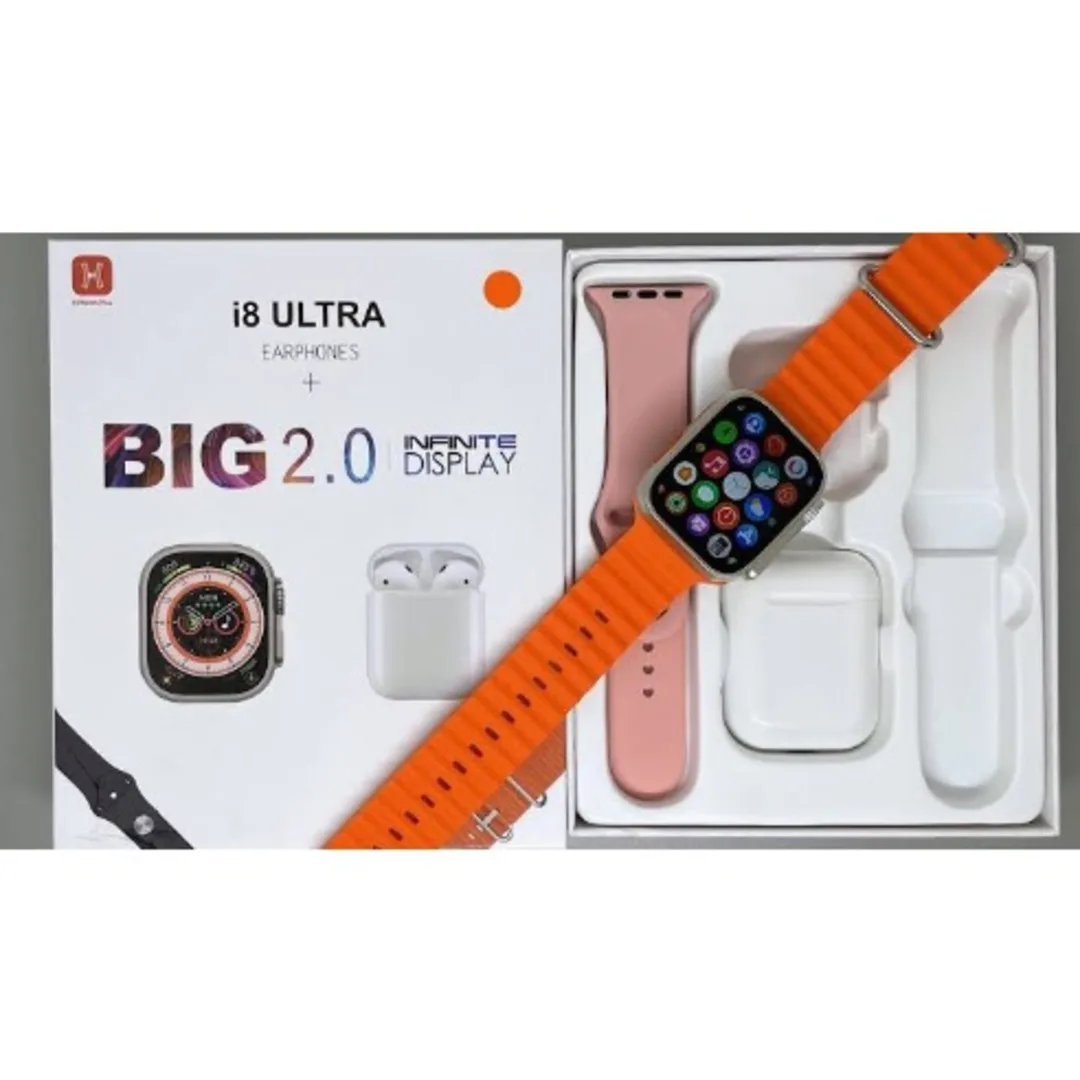 The i8 Ultra Smartwatch is a stylish and feature-packed wearable designed for users who want an affordable yet premium smartwatch experience. It features a large 2.0-inch HD display for a smooth and bright visual experience.